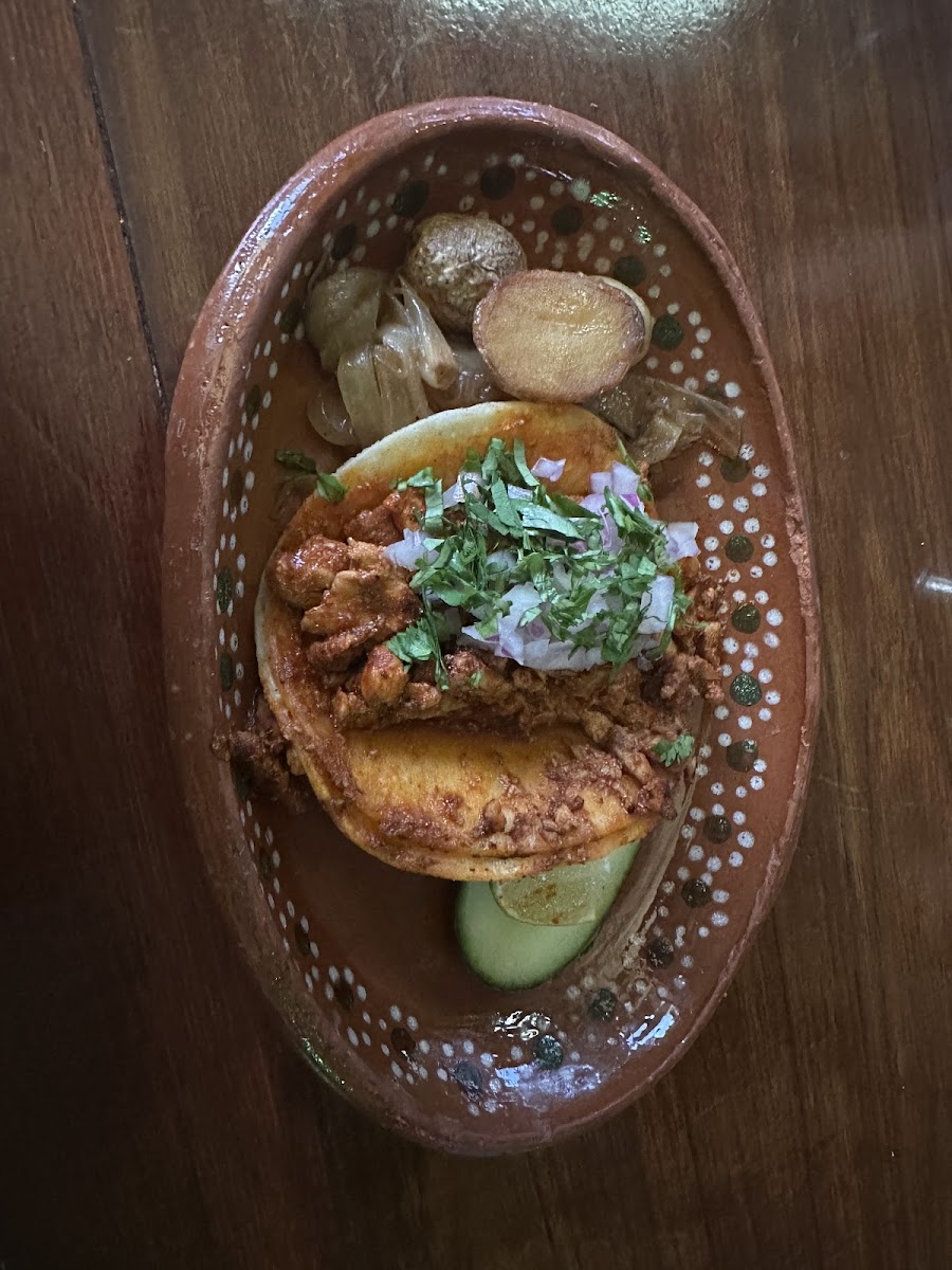 It's a family run business and really cute and wholesome! The food is made by the mom and it's delicious. The birria tacos are wonderful and the carnitas and pastor mixed taco is really good! My one negative might be that it's not as filling compared to the price so it's a bit expensive, but it's a mom and pop restaurant so it's worth it. Haven't had drinks here so can't speak to that, but the bar looks cute and so do the drinks. The vibe is very homey, it's small so if you come with a group it gets super busy.